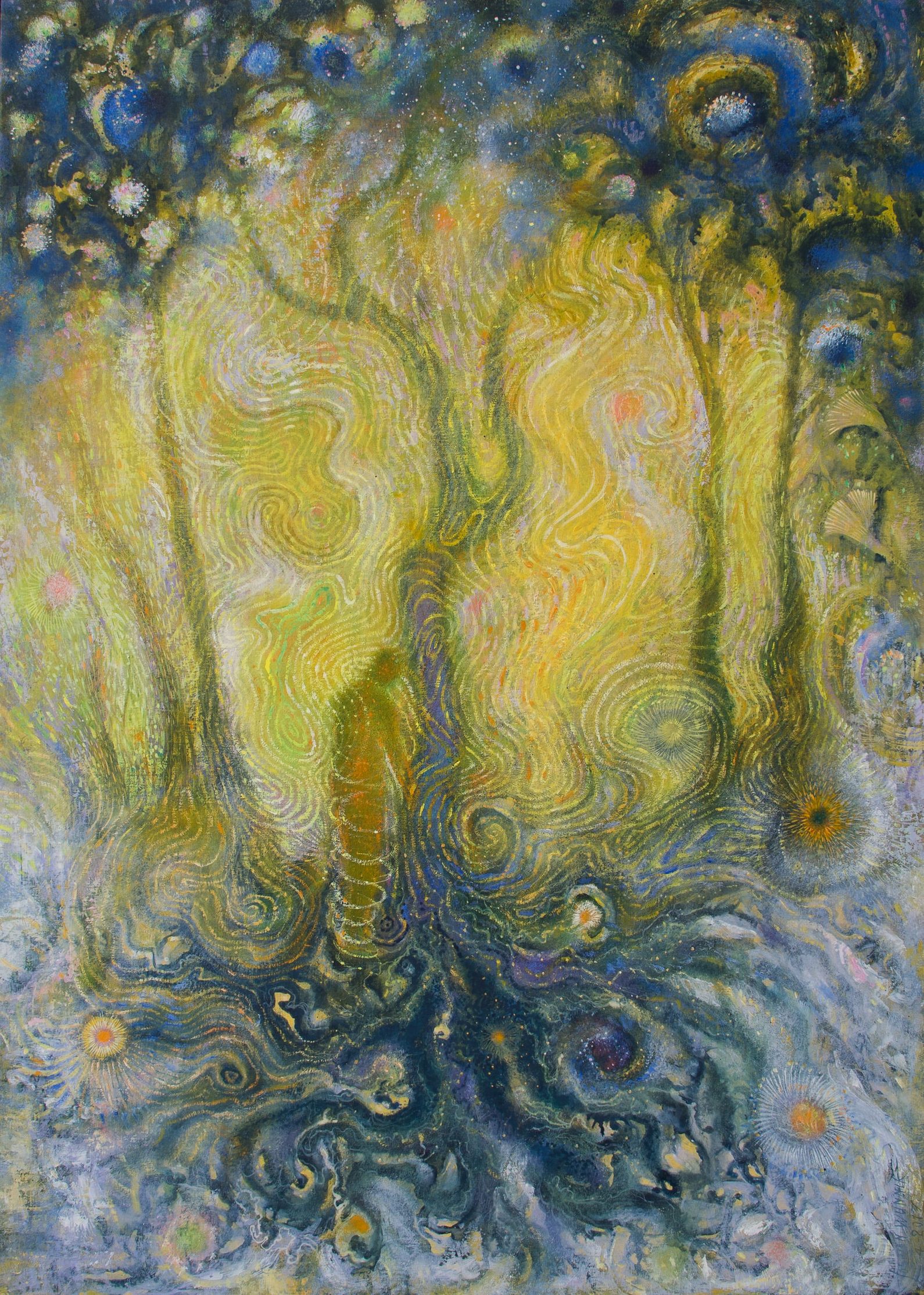 Het is al verbazingwekkend dat verschillende soorten bomen o.a. via chemische stoffen en electromagnetische stromen samen met mycorrhiza-schimmels en bacteriën als samenhangend leefsysteem communiceren en voedingsstoffen uitwisselen, maar hoe kan dit - een boom die blijkbaar signalen uitzendt en een mens die deze ontvangt? ‘Iets’ legt via de berk contact met ‘iets’ in mij; bewustzijnsgolven die interfereren? Ik ga ergens binnen, begeef me binnen het aandachtsveld dat generaties van bomen hier tijdens hun groei gedurende honderden jaren hebben gecreëerd. Wordt op het moment dat mijn aandachtsveld samenvloeit met dat van de berken even een lege ruimte voelbaar waarin niets dan liefde is?