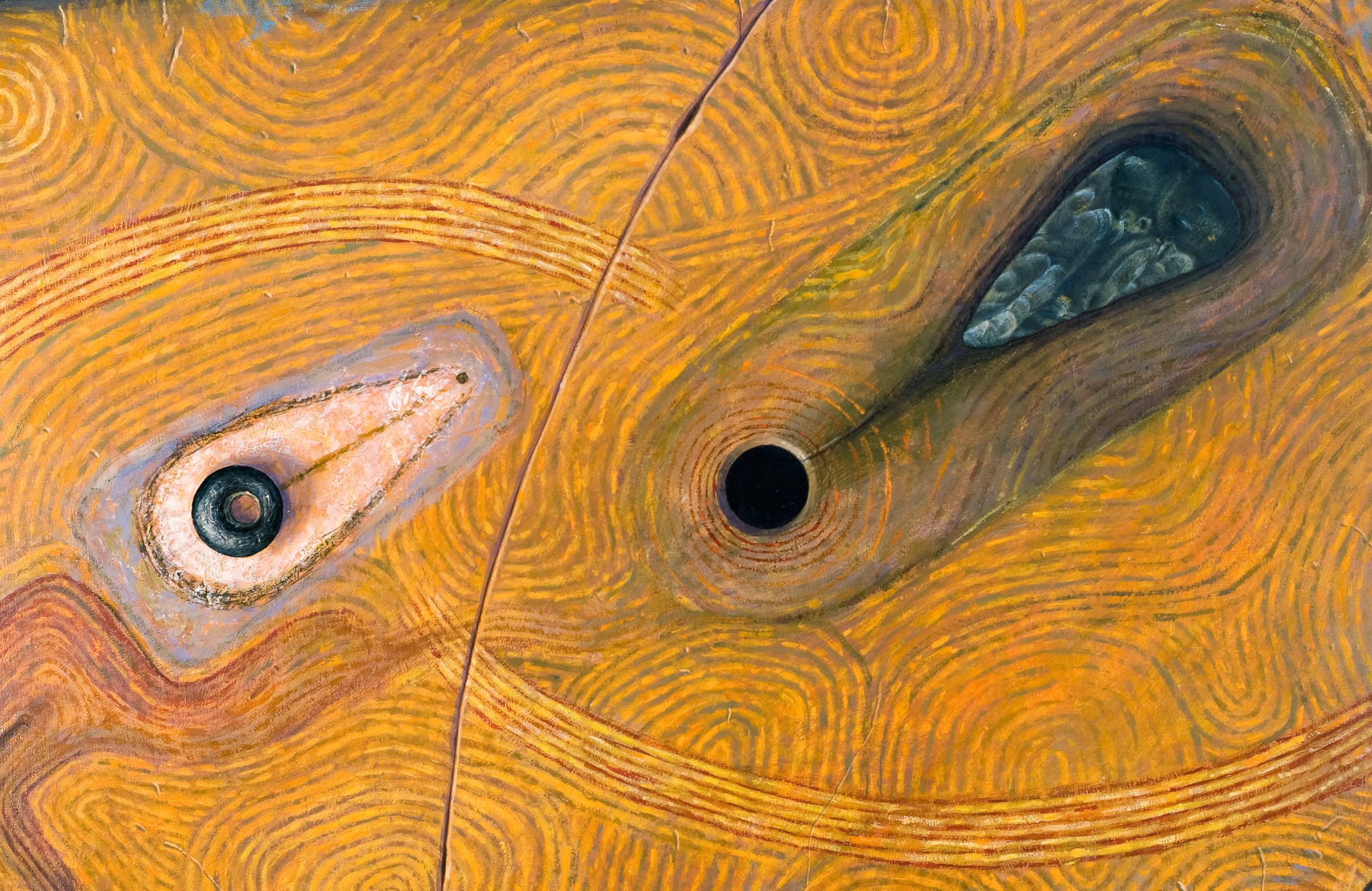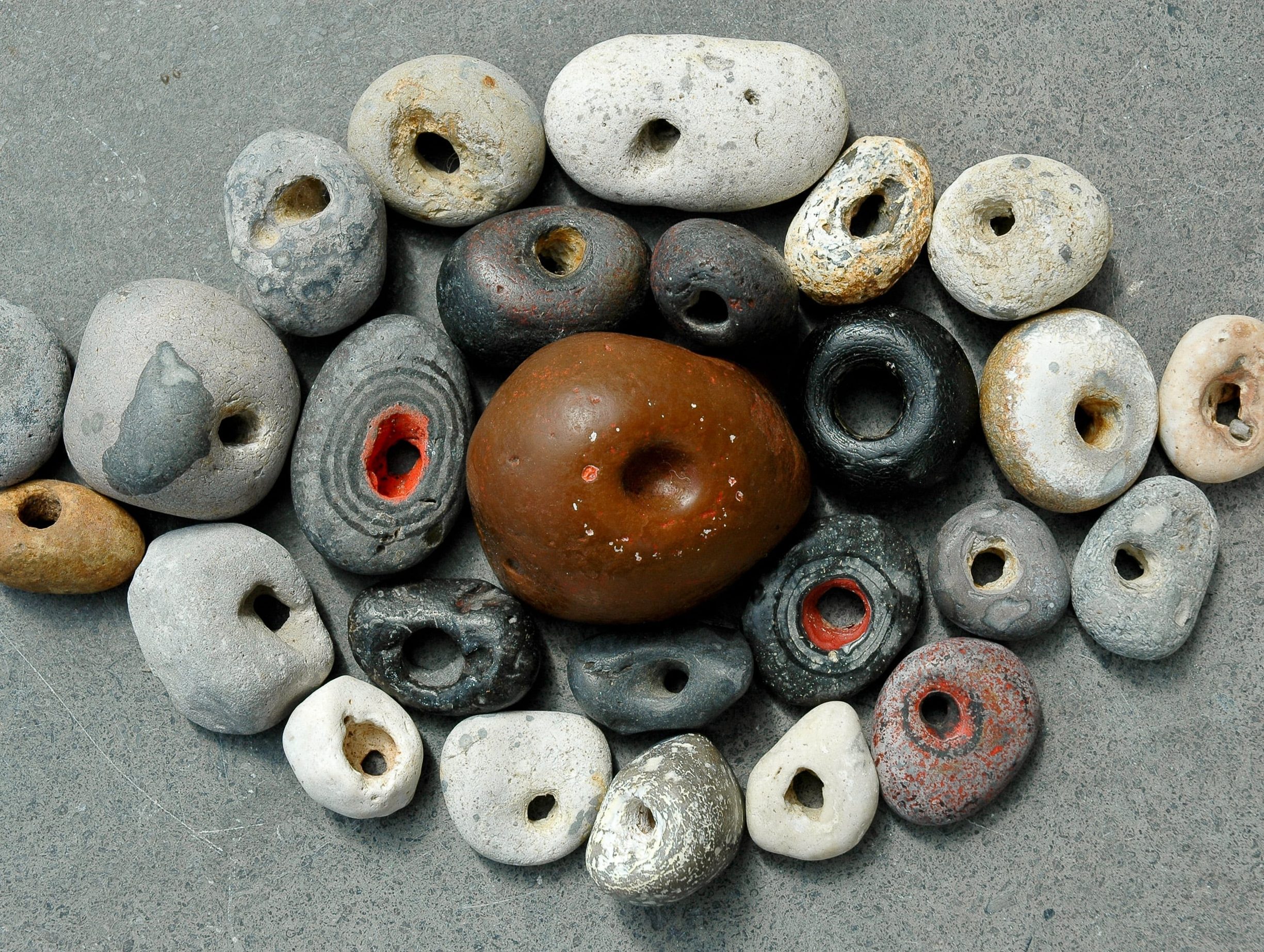 Zittend tegen een eik op de heuvelkop hoor ik hoe het geruis van de wind in de eikenbladeren zich vermengt met het geraas van de aangrenzende autowegen. Deze plek trekt mijn aandacht naar beneden en naar binnen, een Zwarte-plek. Daarna loop ik naar de zes eiken die verspreid staan boven aan de helling. Bij de eerste vind een vuursteen met een rond gat. Het vinden van zo’n steen ervaar ik steeds als een geschenk van de plek. Hier is de Rode-plek die samen met de Witte en Zwarte-plek een kleine driehoek op deze heuvelkop vormt.