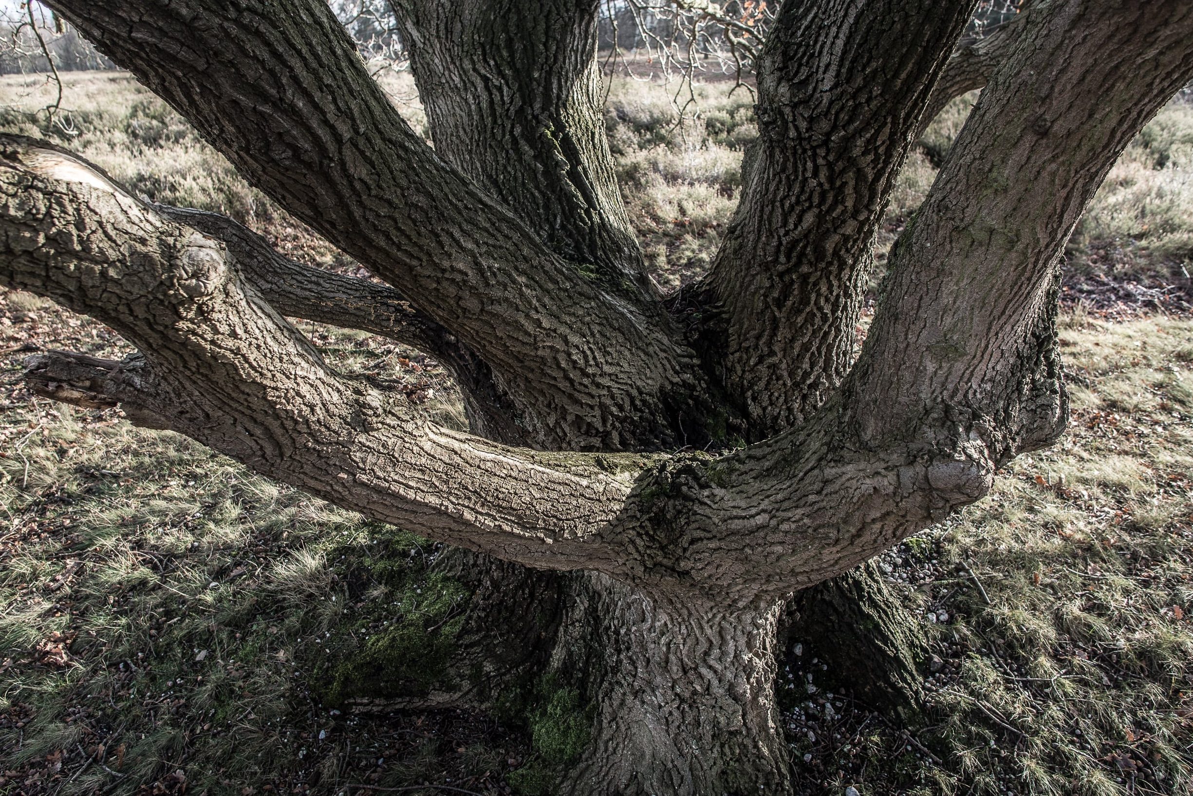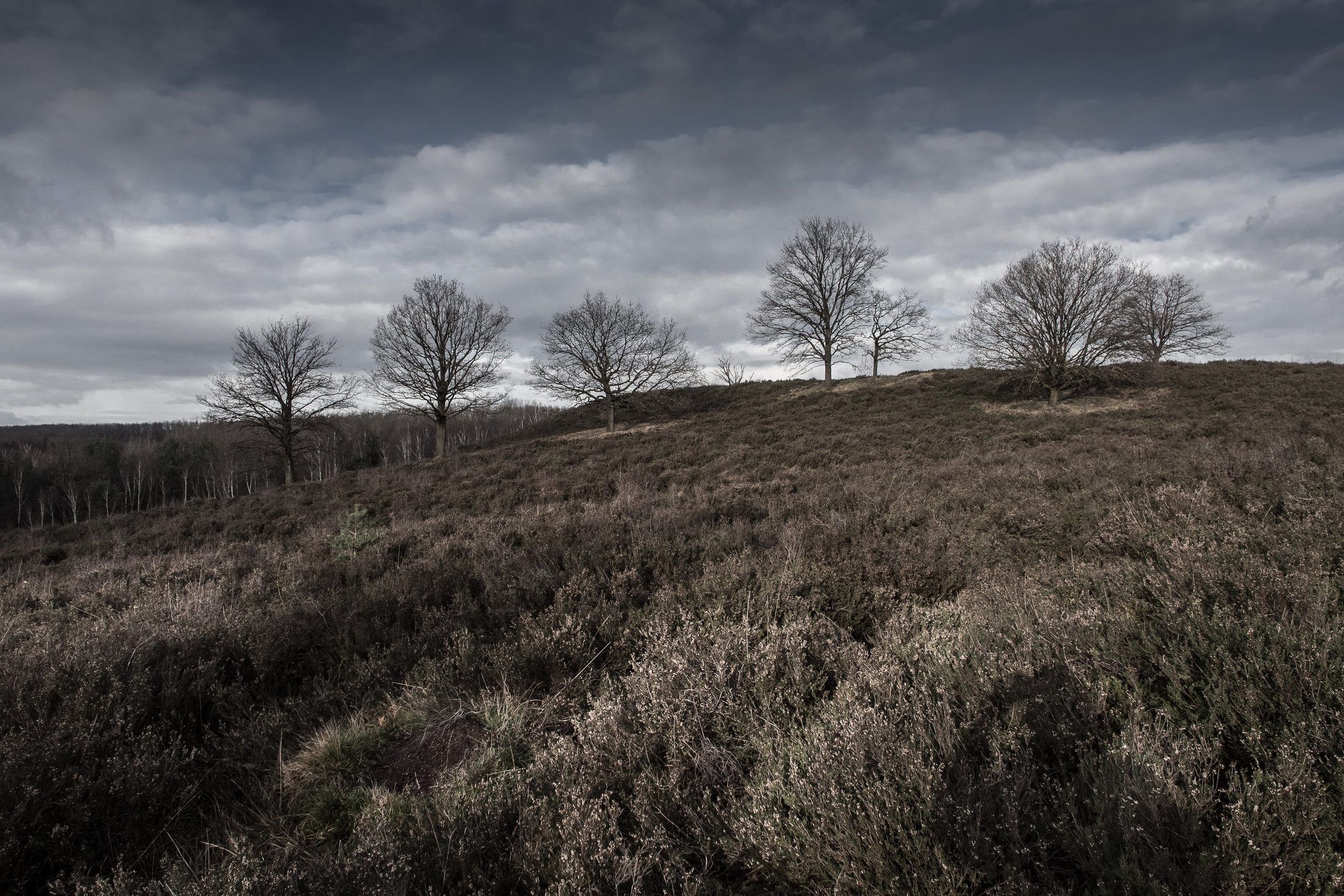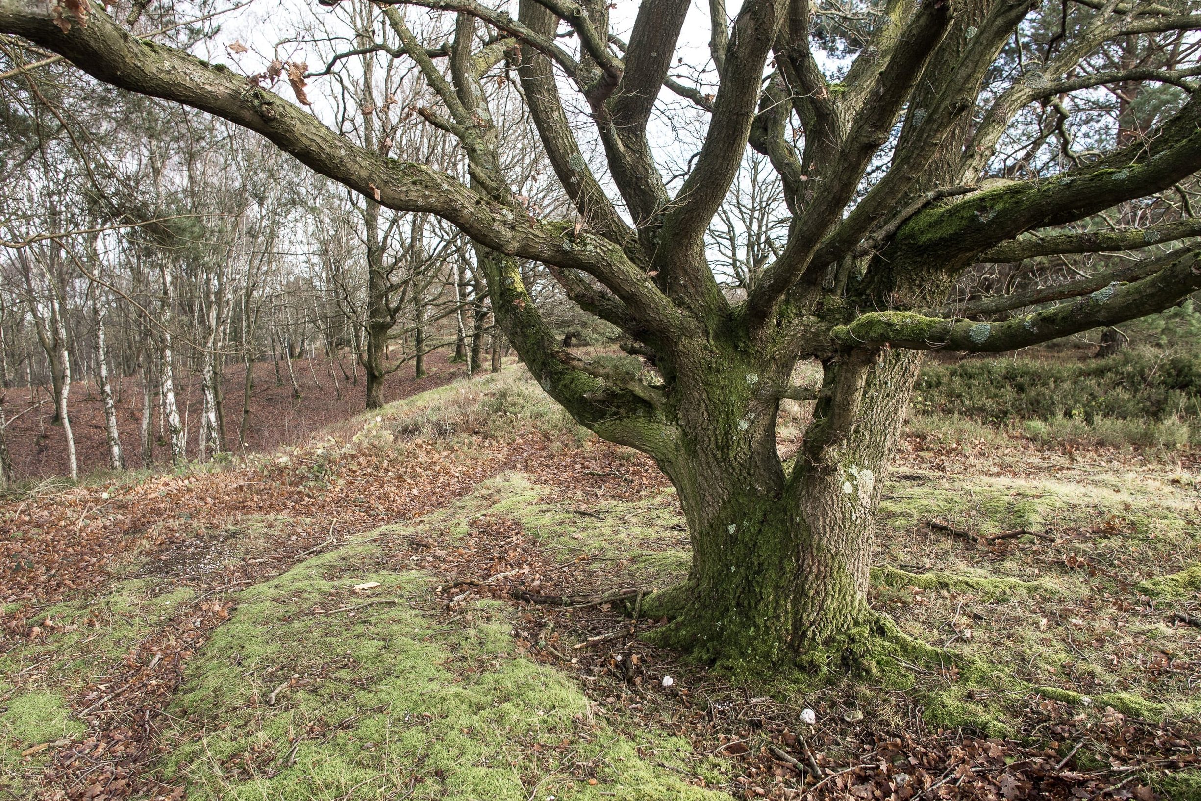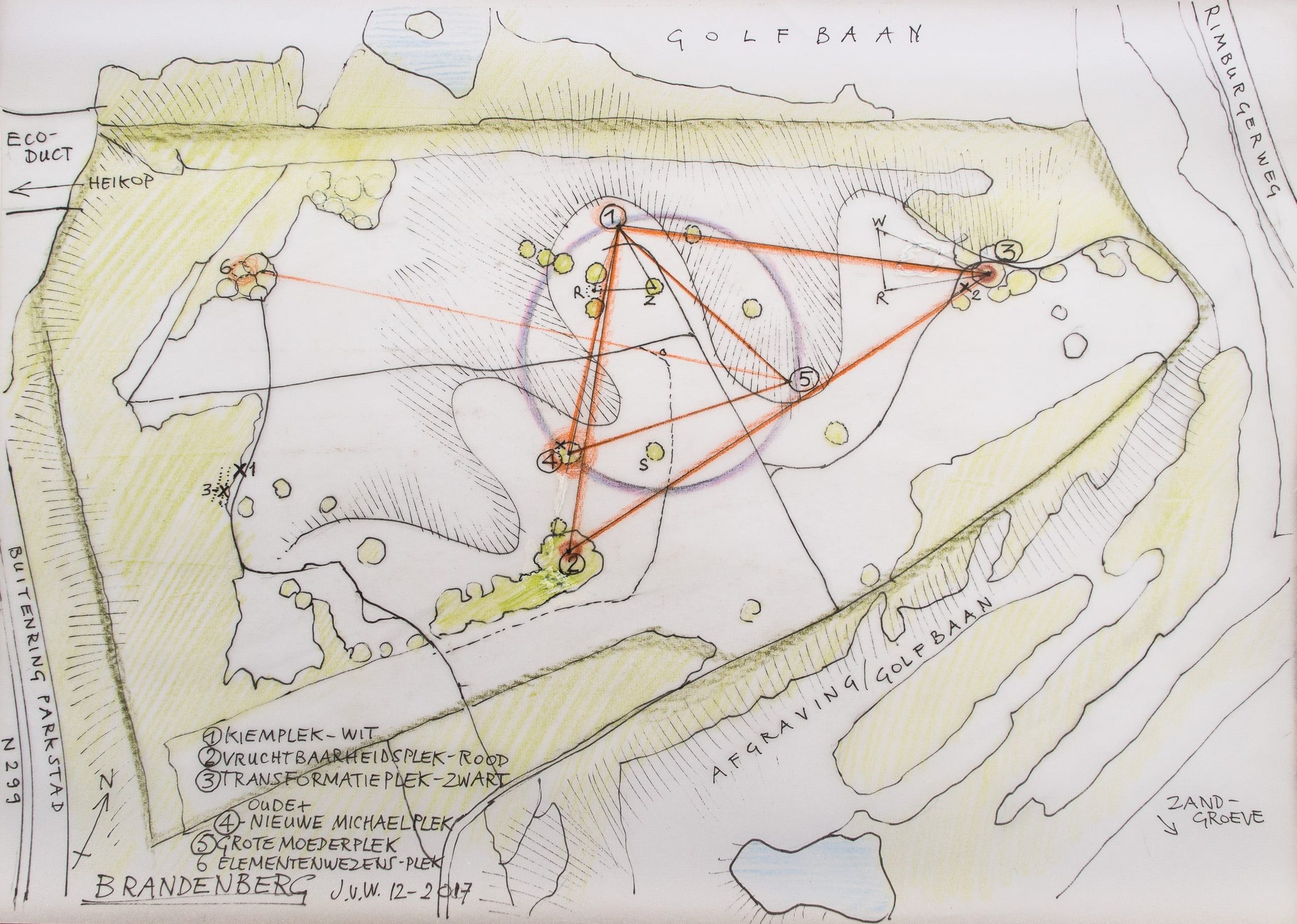 Ik stuit meteen al op een ontvangstcomité in de vorm van een groep eiken. Een gevoel van verbinding maakt dat ik er langer blijf en de vormen van de eiken langzaam in me opneem. (Als ik in december met Lidy nogmaals de Brandenberg bezoek constateren we dat dit een plek van elementenwezens is.) Daarna loop ik langzaam omhoog naar de eerste heuvelkop die een wijds gevoel van open ruimte oproept, niet alleen door het vrije uitzicht naar het westen over de lager gelegen golfbaan en een deel van de verre skyline van Brunssum, maar ook door de levens-energetische kwaliteit van deze Witte-plek.
