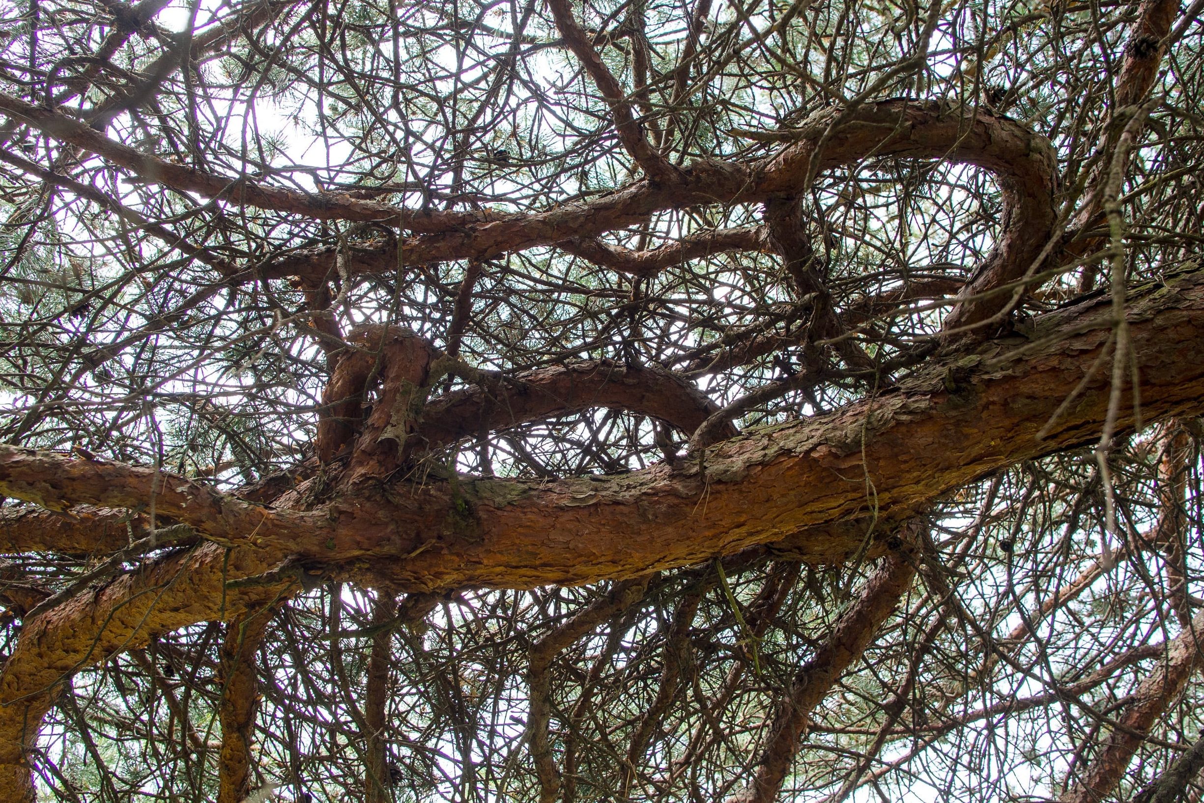 We volgen het pad in zuidelijke richting tot een bomenrij die, parallel aan de hoogspanningskabels, het ‘sacrale’ gebied begrenzen. Aan het einde van deze rij staat een groep bomen die mijn aandacht trekt. De wichelroede wijst daar een Rode-plek aan, en vervolgens een den met sterk gebogen takken op een Zwarte-Maria-plek. Enkele tientallen meters verderop staat de markante eik in wiens lage kroon ik in oktober zat. Lidy ziet daar bewegend, stralende oranje van waaruit alle mannelijke en vrouwelijke frequenties van de uiteenlopende krachtplekken op de Brandenberg met elkaar versmelten — de Plek van verbinding die in deze tijd alle polariteiten met elkaar verzoent. Tot slot vinden we nog de Kosmische moeder-plek (5).