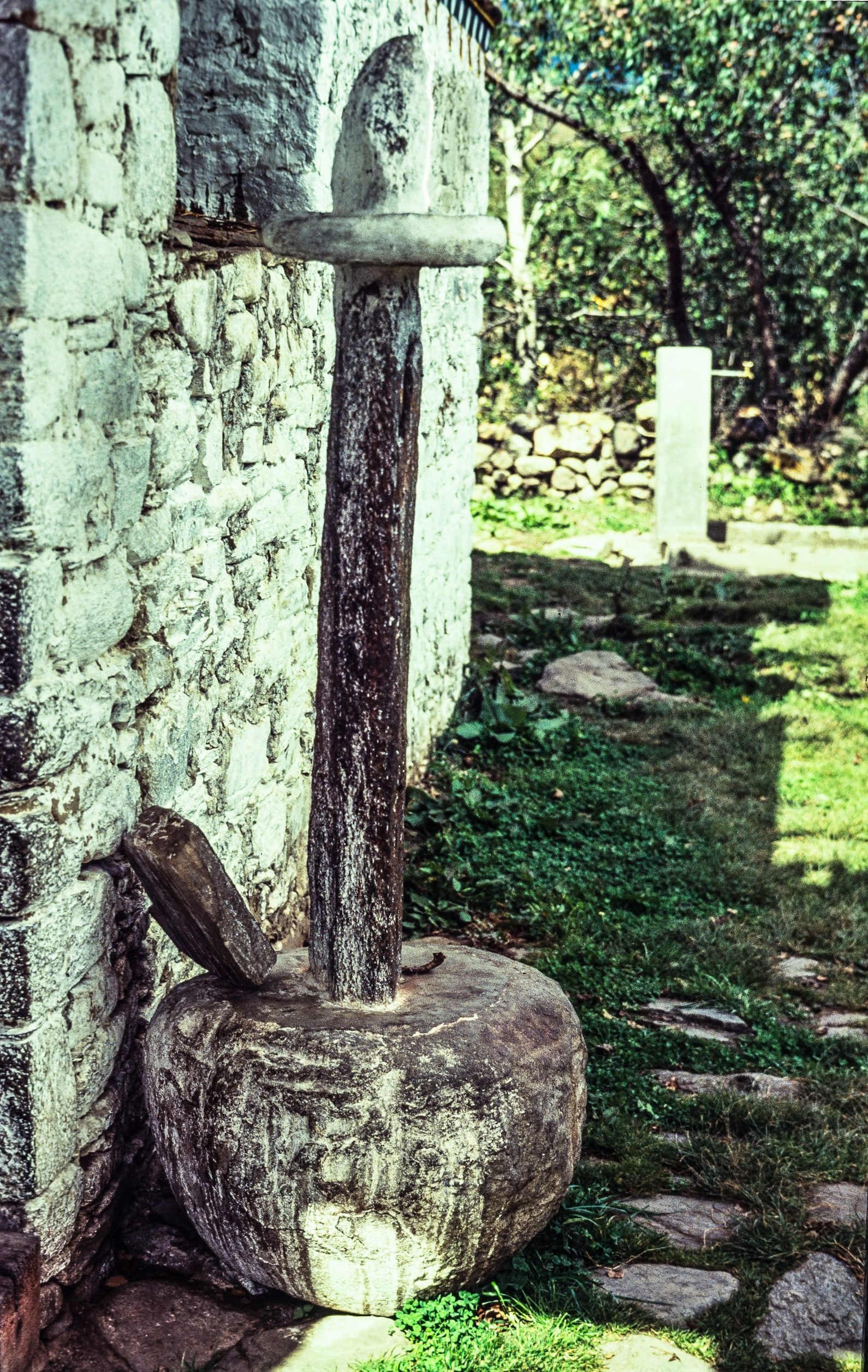 Tijdens een verblijf in Kathmandu en in Bhutan in september en oktober 1991 werd mijn aandacht, meer nog dan door de prachtige tempels, meerdere malen nadrukkelijk getrokken door staande stenen die oprezen uit een stenen cirkel, bijvoorbeeld op Kailasha Hill in Kathmandu en bij Kenchoghsum lakhang in Bhumthang, Bhutan. De ‘Groene stroom’ werd ooit waarschijnlijk gesymboliseerd door een verticale steen, aan de voet omvat door een cirkel. Dit beeld lijkt op de Shiva-lingam uit het Hindoeïsme; ook hier weer de vereniging van het mannelijke en vrouwelijke principe (Shiva en Shakti). Ook in het symbool van de verticale stam van de Saksisch-Germaanse Irminsul kan men dit oerbeeld van groei en licht vermoeden.