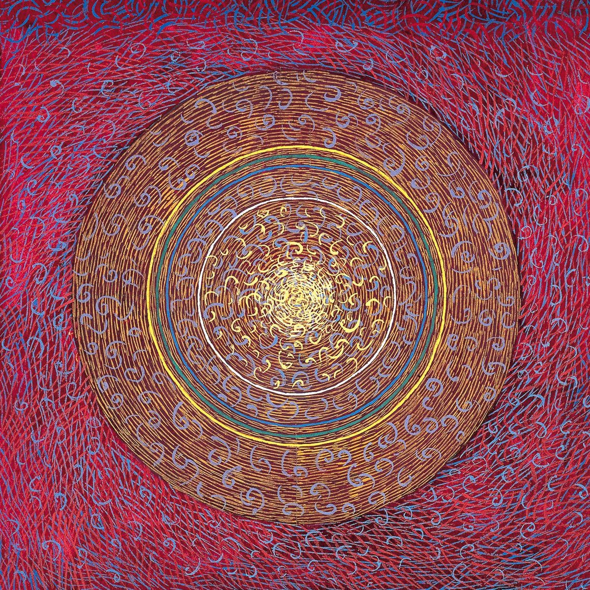 Hun aanblik trof me omdat het laatste schilderij dat ik voor mijn reis maakte net zo’n, uit concentrische cirkels opgebouwde schijf van licht liet zien!