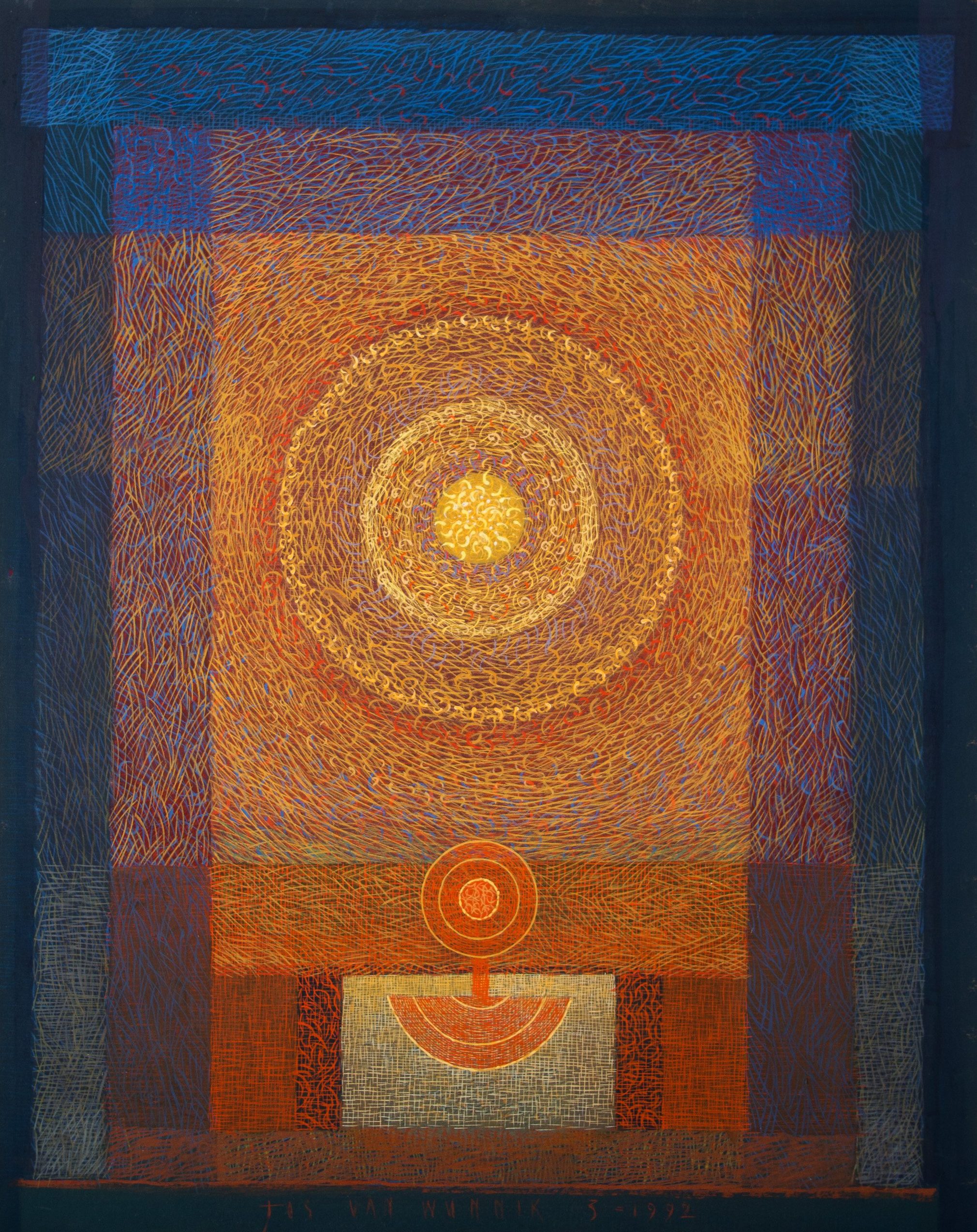De reis door Bhutan inspireerde me om een serie schilderijen te maken van cirkels met stralend middelpunt die zowel aan sterren als aan bloemen deden denken. Het was de verste reis die ik ooit maakte. De schilderijen die daarna ontstonden waren de meest verinnerlijkte beelden die ik tot dan toe maakte.