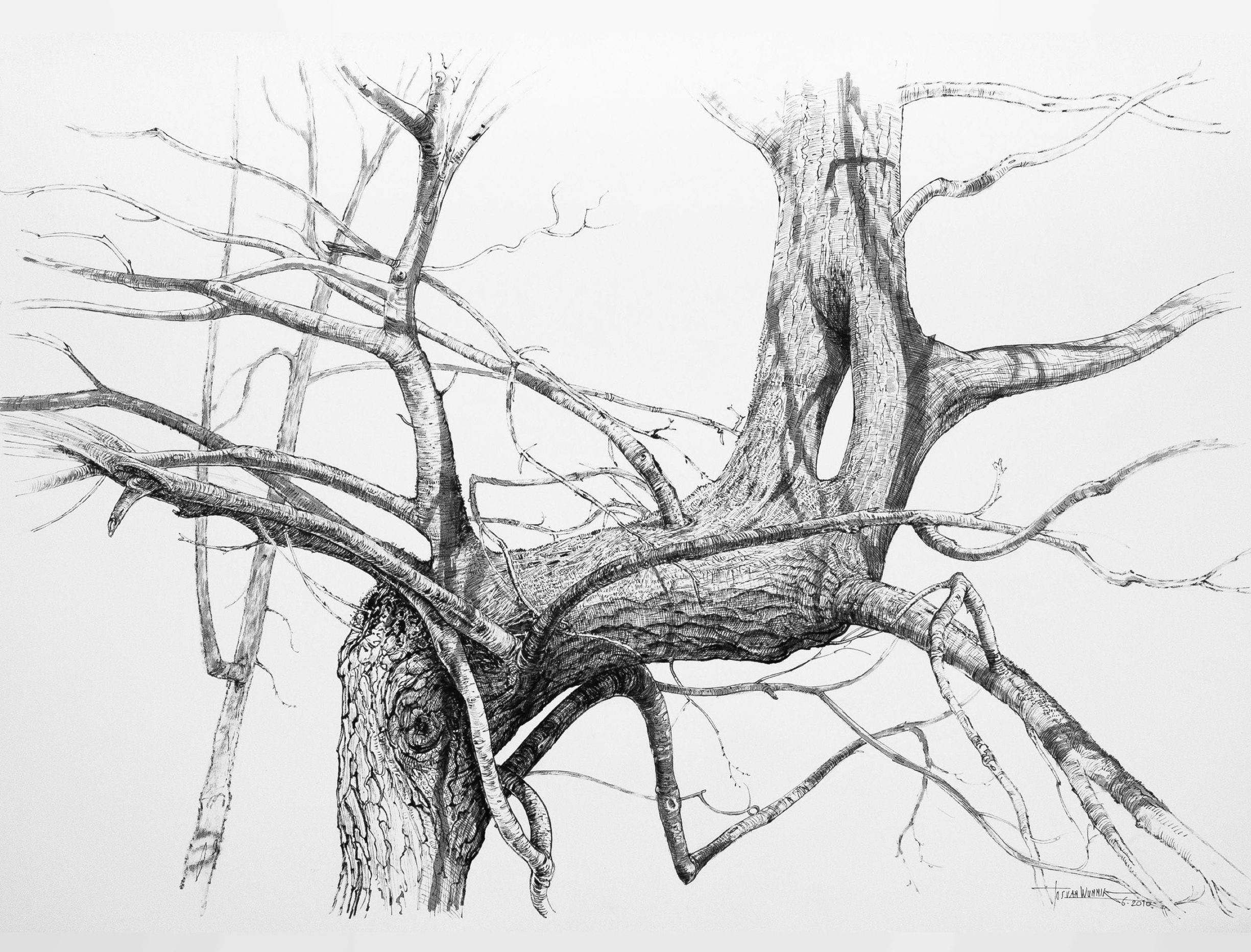 Maar waarom voel ik me zo aangetrokken tot bomen met opvallend hoekige, golvende, spiralende, naar beneden gerichte, of aan elkaar gegroeide takken?