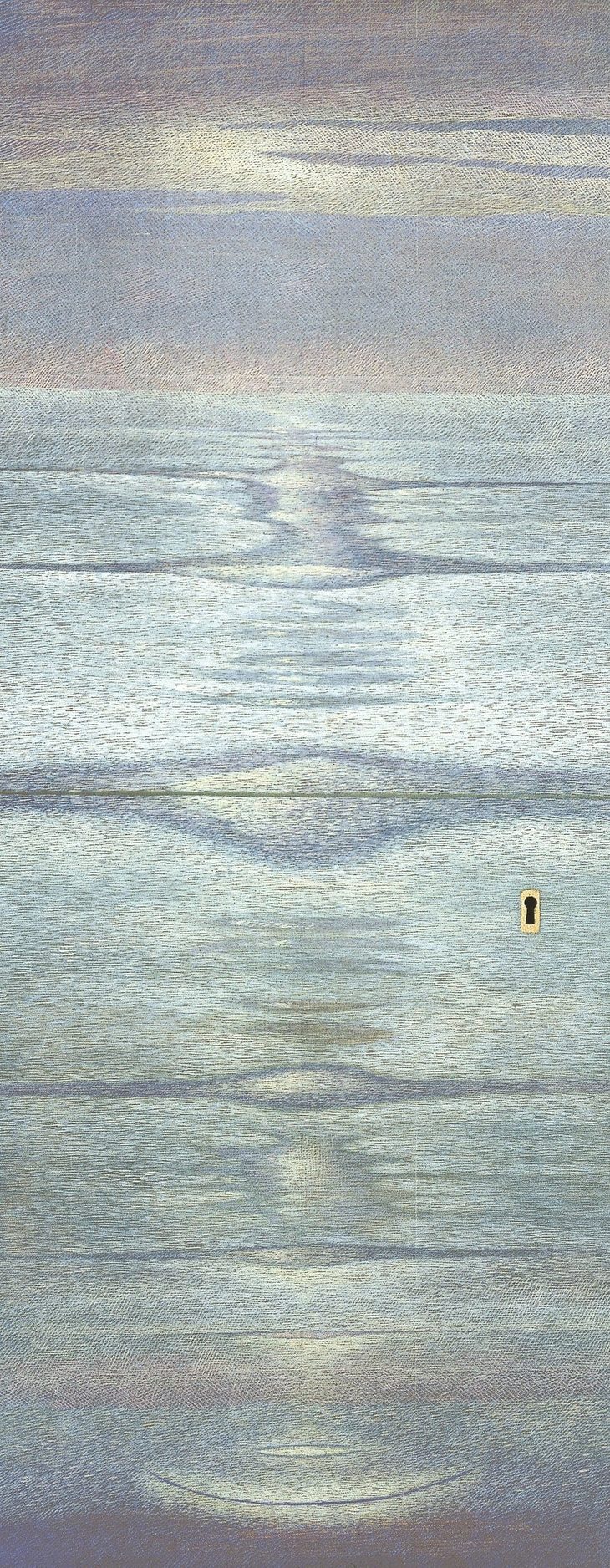 Het weidse land schilder ik vreemd genoeg niet als een horizontale maar als een verticale ruimte. Nu kijk ik erna als een eerste schuchtere stap om nader te komen tot zowel de aarde als tot de ervaring van haar kosmische hoedanigheid. Alles lijkt dan nog bewegingloos. Pas vele jaren later gaat het stromen in mijn werk…