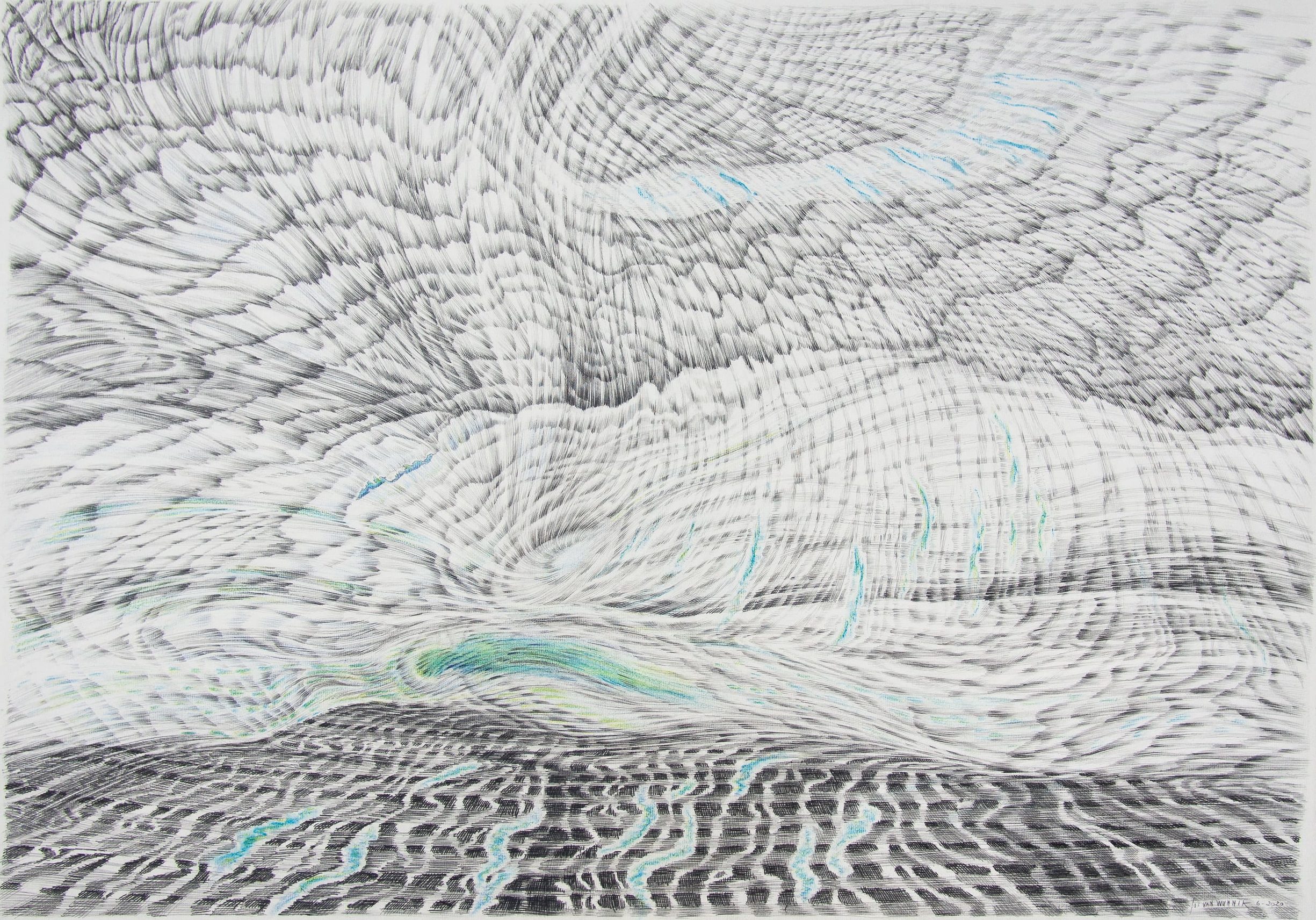 May 8, 2020: During the period of the Corona pandemic I am diagnosed with non-Hodgkin lymphocytic carcinoma and a few months later also with lung cancer (that fortunately can be recognised and removed in a very early stage), and more than ever I realize how fragile and temporary life is. In this period of medical treatments and recovery I steadely work on the drawing ‘Deep time’, a discovery tour on paper. Via a multitude of lines with interfering rhythms, inspired by photos of a glacier in Greenland, I create a maze, a passage of pure attention and repentance to another time dimension.