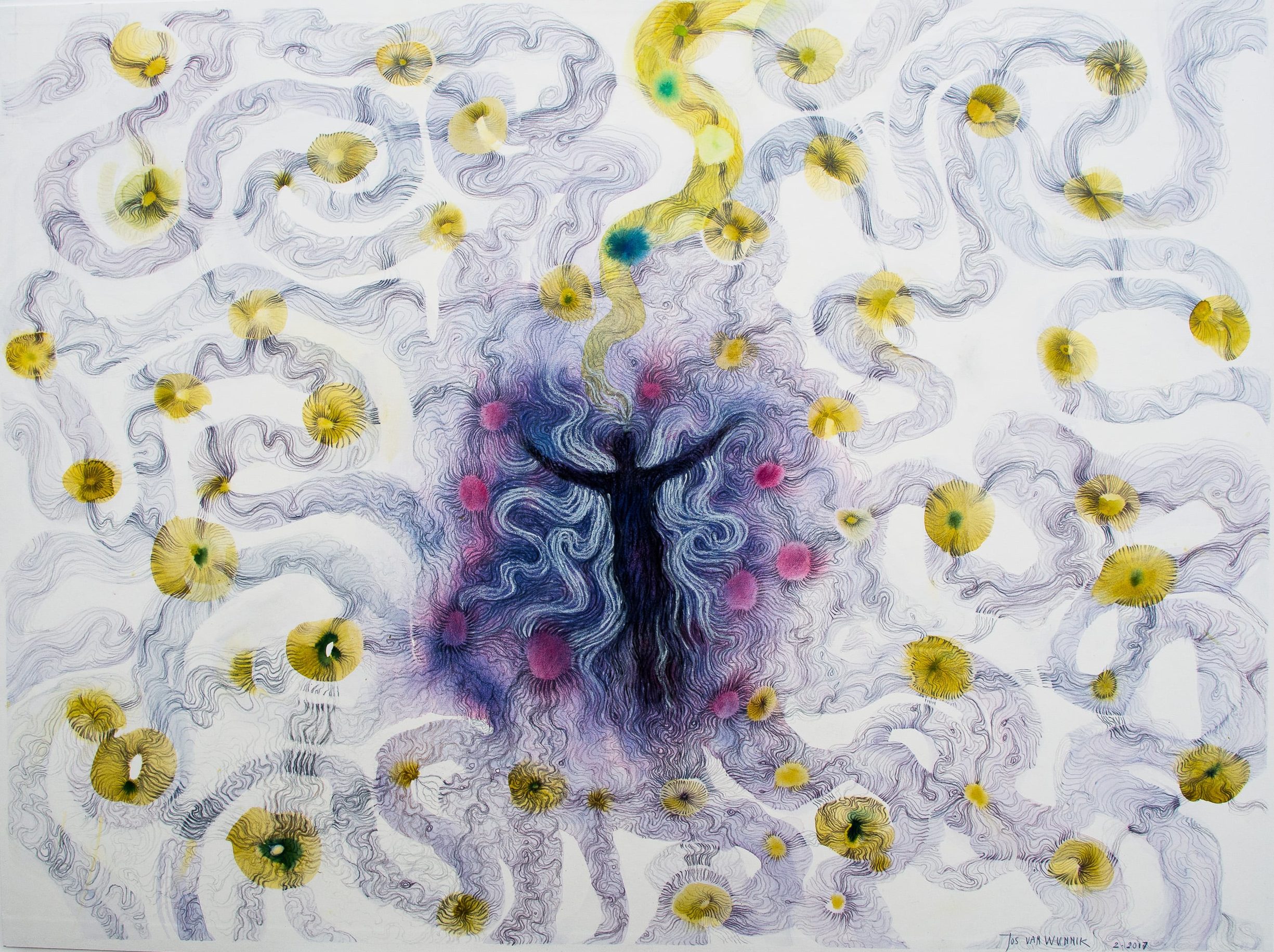 Materiaal & Techniek: Aquarel, houtskool, potlood op papier